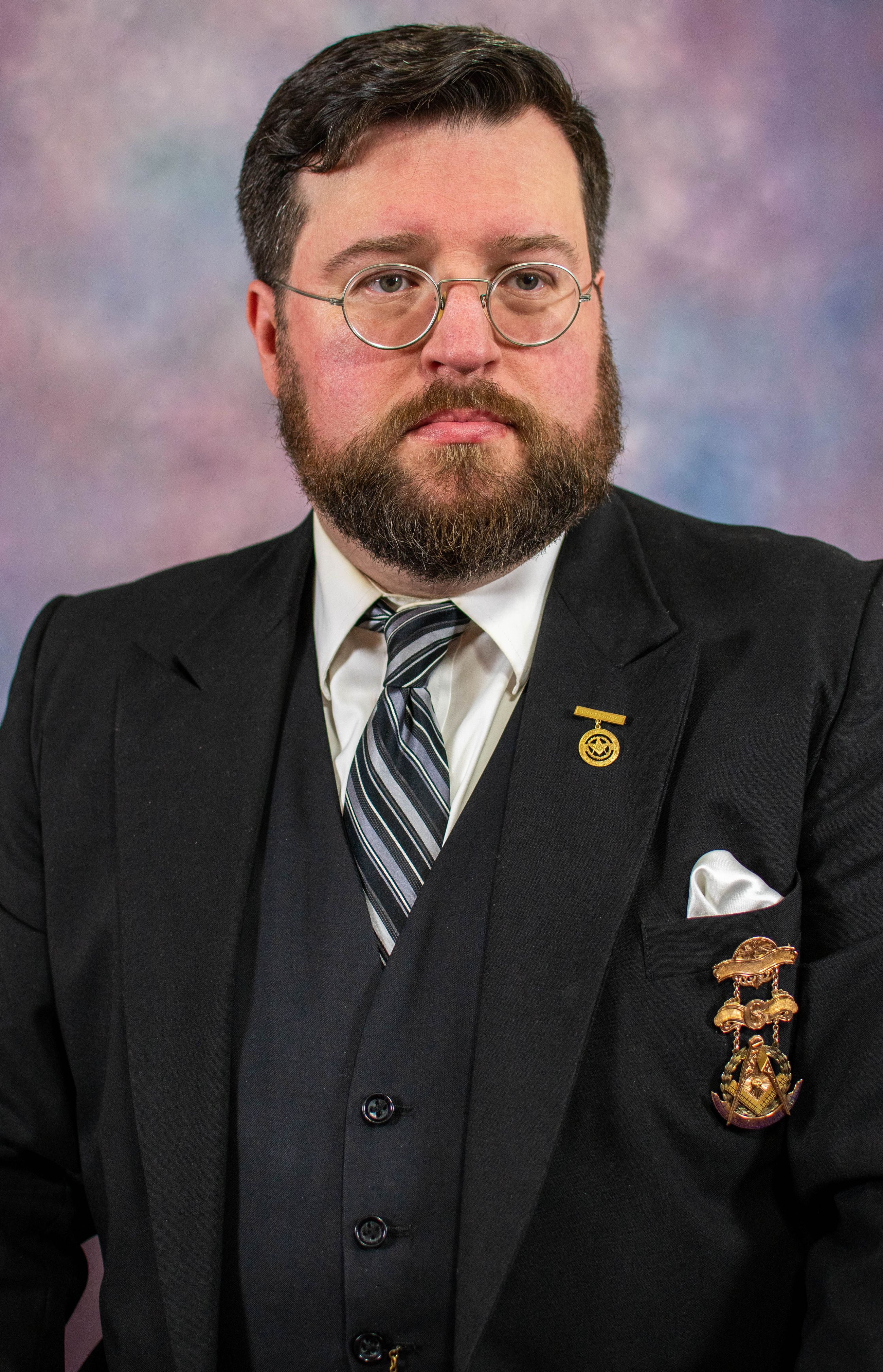 W. Bro. Matt was the 137th unique Master of Terre Haute Lodge No. 19, F. & A. M., having served in that position in 2013, 2014, 2017, and 2024. Before becoming a plural member at Terre Haute Lodge in 2009, Matt served in the East at his home Lodge, Riley Lodge No. 390, F. & A. M. in 2004, where he was raised in 2000. Matt is also a Charter Member of Double Eagle Lodge No. 773, F. & A. M., serving as its Worshipful Master in 2021. In 2022, Matt was awarded the Order of Service to Masonry (OSM) by Grand Master Daniel L. Martin and the Grand Lodge of Indiana at its Annual Communication. Among many other Masonic memberships and accolades, Matthew is a recipient of the Knight York Cross of Honor, the Order of the Purple Cross, and the Knights Templar Cross of Honor. In 2024 Matthew was elected to receive the 33rd Degree by the Ancient Accepted Scottish Rite Valley of Indianapolis at the August 2025 session of the Northern Masonic Jurisdiction in Indianapolis. He has also served as the Commander-in-Chief (2021-22) of the Indiana Consistory, Valley of Indianapolis AASR, and is a Grand Lodge of Indiana Ultimate Master Ritualist. In 2015, he was named a Worshipful Master Emeritus of Terre Haute Lodge No. 19, as well as Ambassador to the York Rite Sovereign College of North America. Matt holds a Bachelor's of Science Degree in Anthropology from Indiana State University and a Master's of Philosophy Degree in Historic Archeology from the University of Cambridge. He is currently employed by the Indianapolis Scottish Rite Cathedral as the Manager of Auditorium Operations. In his non-Masonic free time, Matt enjoys woodworking and turning, having made custom gavels for many of the Master's of Terre Haute Lodge.